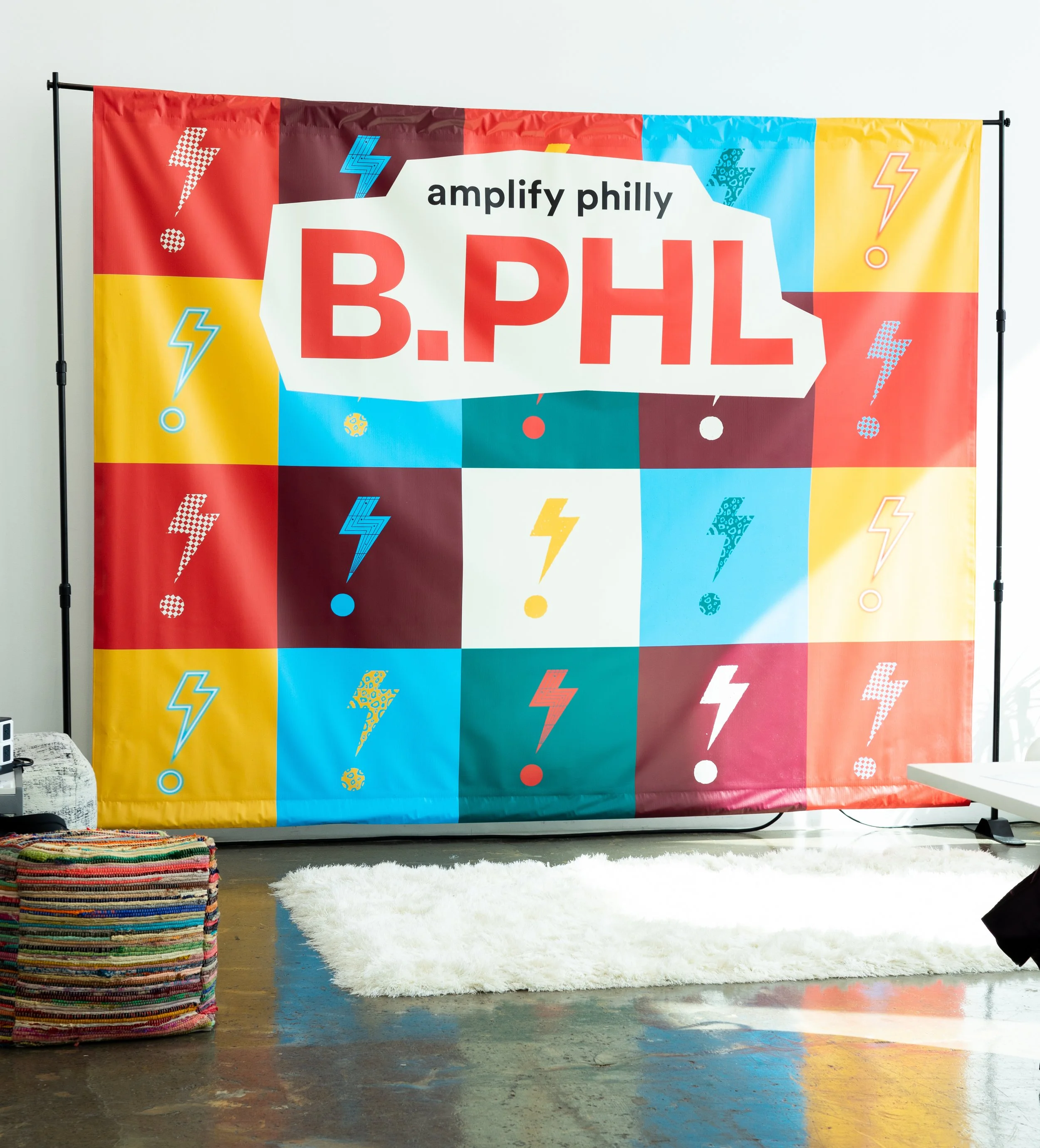 I led a team of designers to create a suite of visuals for B.PHL’s live event. From buttons, to social media graphics to vinyl decals that wrapped the entire space.