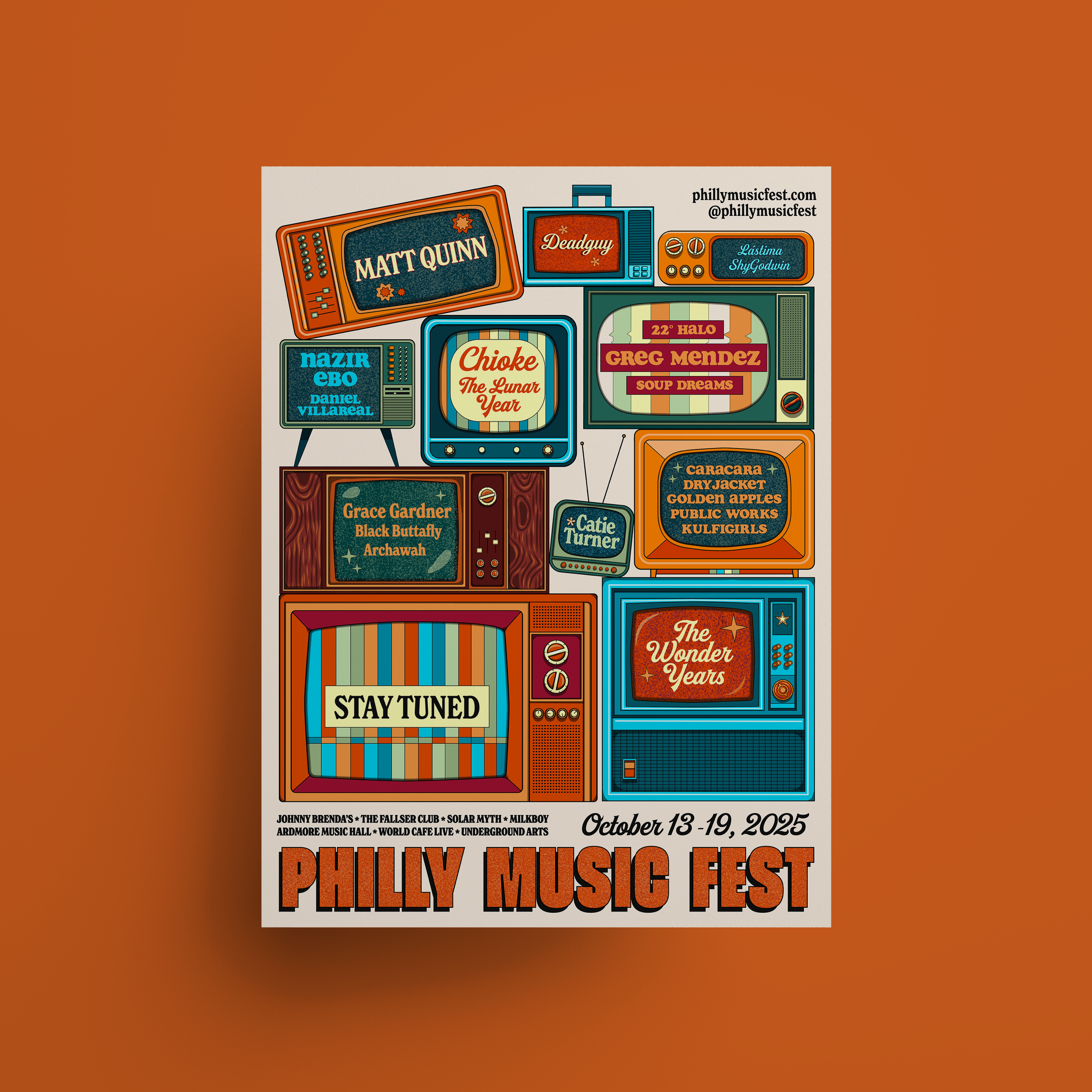 This is the seventh year that I have done the artwork for Philly Music Fest. Each year I am given a playlist and a theme to follow for inspiration. This year the theme was “trains”.